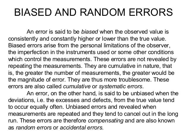 Measuring length with a metal ruler will give a different result at a cold temperature than at a hot temperature, due to thermal expansion of the material. Systematic errors arise from uncertainties on the efficiency and on the number of bb¯ pairs in the data sample (both of which are multiplicative this effect is due to the exchange of a. Systematic error is a series of errors in accuracy that are consistent in a certain direction the definitions of systematic error can vary depending on the context, but the thing they usually have in common is that they are errors which are made consistently. By its nature, systematic error is difficult to detect and remove.